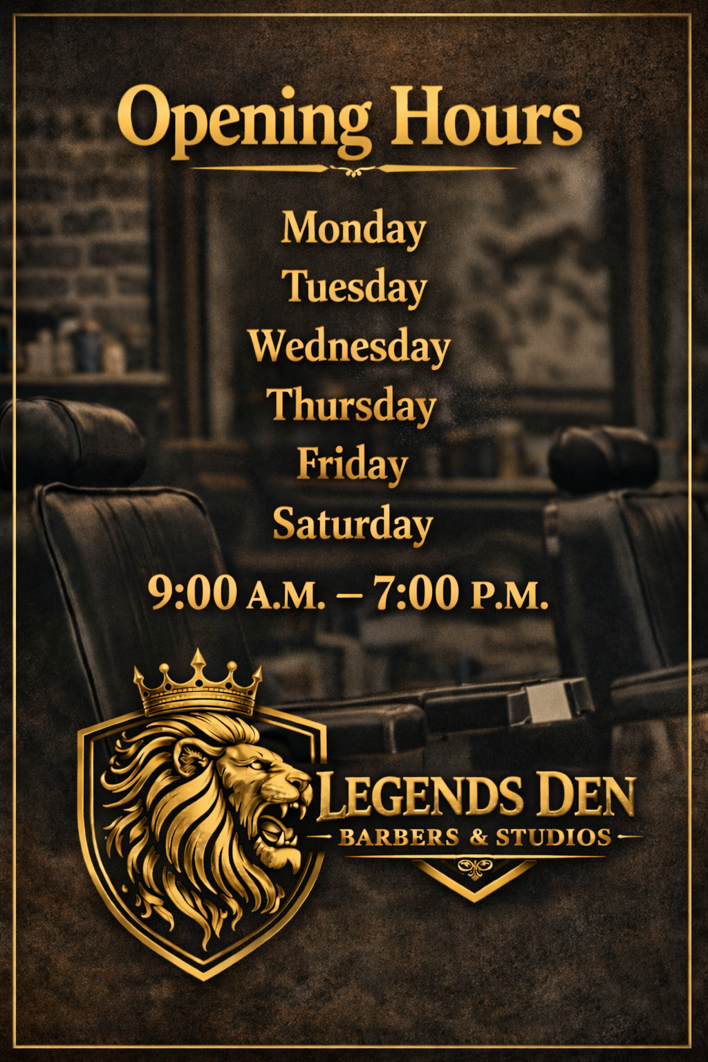 Built on ambition, discipline, and elevation, Legends Den represents individuals who refuse to stay average. Every detail of the brand reflects growth, power, and self-respect — the type of environment where barbers and clients alike step into a higher version of themselves.